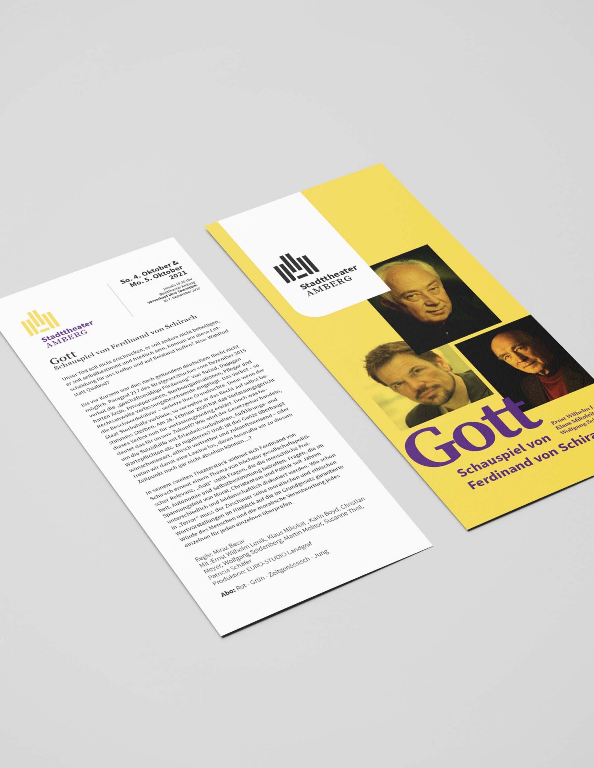 Das entworfene Design lässt das Stadttheater und die Stadt Amberg in einem modernen und frischen Look and Feel erscheinen. So spricht das Konzept die Empfänger generationen-, zielgruppen- und genreübergreifend an. Diese Wirkung ermöglicht es, das Stadttheater mit seiner Geschichte und Entwicklung auf eine neue Ebene zu tragen. Durch die Erfüllung dieser Bedingungen bilden beide Gestaltungen eine Einheit, können flexibel und harmonisch zusammenwirken und sich im Layout ggf. ineinandergreifend unterstützen.